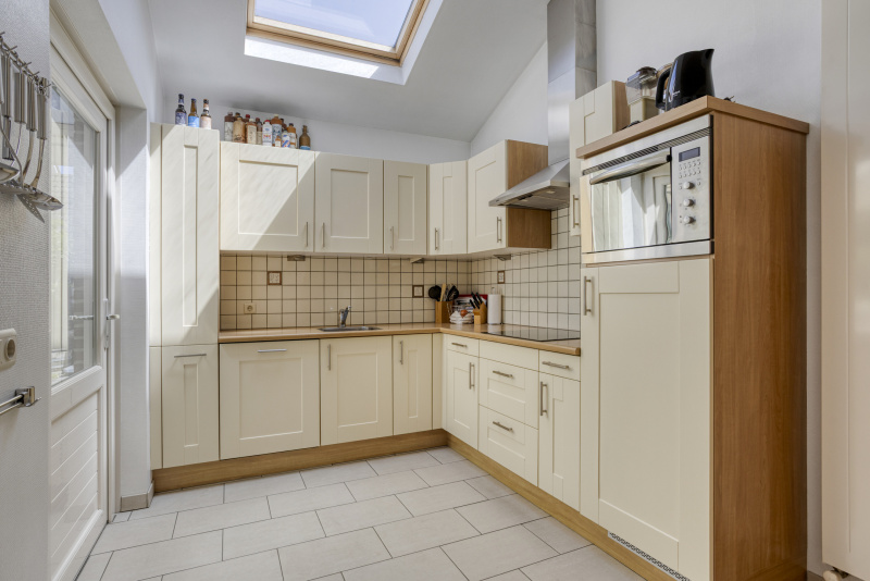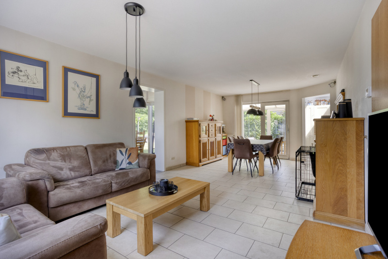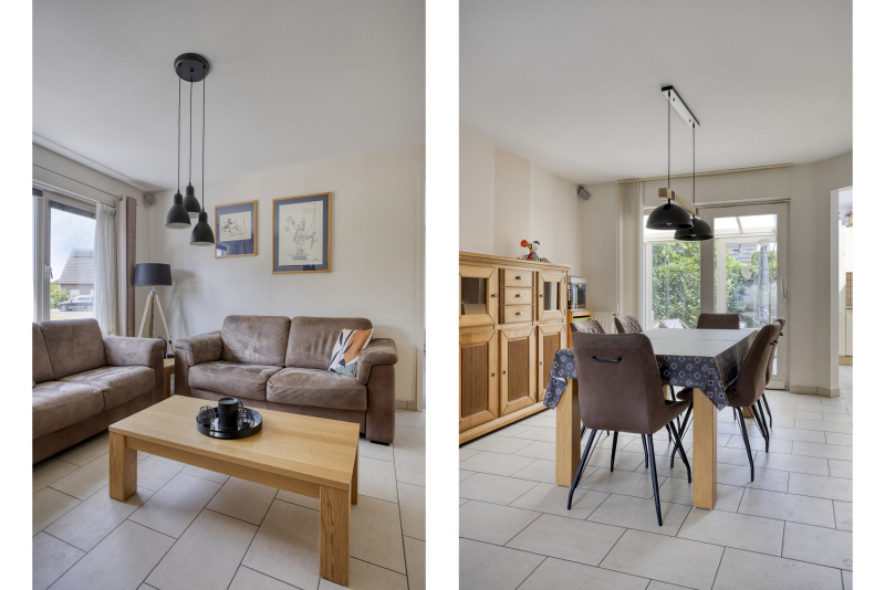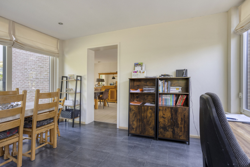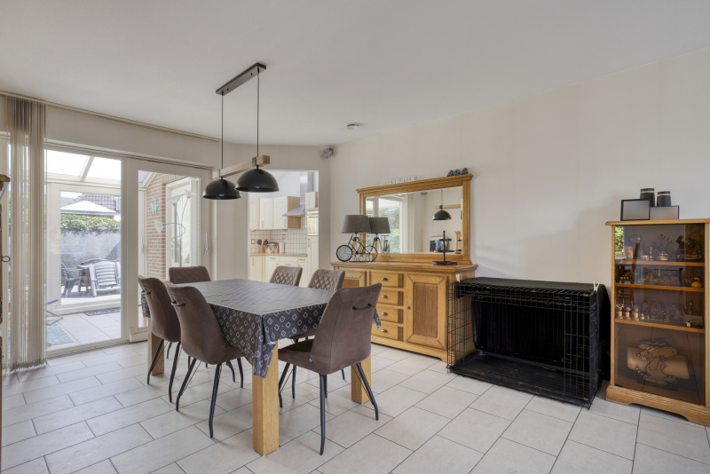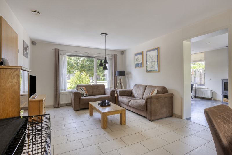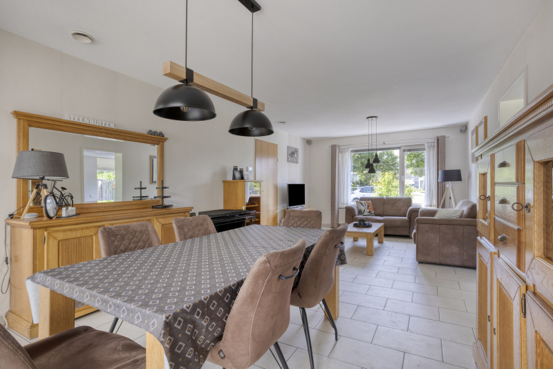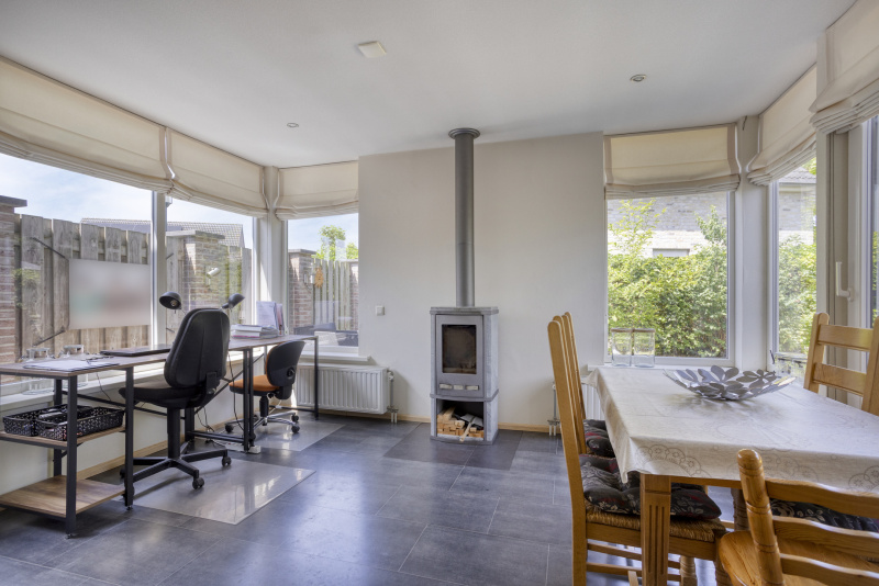 Je komt binnen in een nette entreehal met toegang tot het toilet, de trapopgang en alle leefruimtes. De ruime woonkamer staat in verbinding met de serre en de tuin: schuifpuien, veel licht en zicht op groen. De open keuken is compleet uitgerust met o.a. inductieplaat, combi-oven en vaatwasser. Aangrenzend aan de woonkamer vind je een sfeervolle eetkamer/loungekamer met pelletkachel, perfect voor lange avonden tafelen.