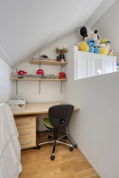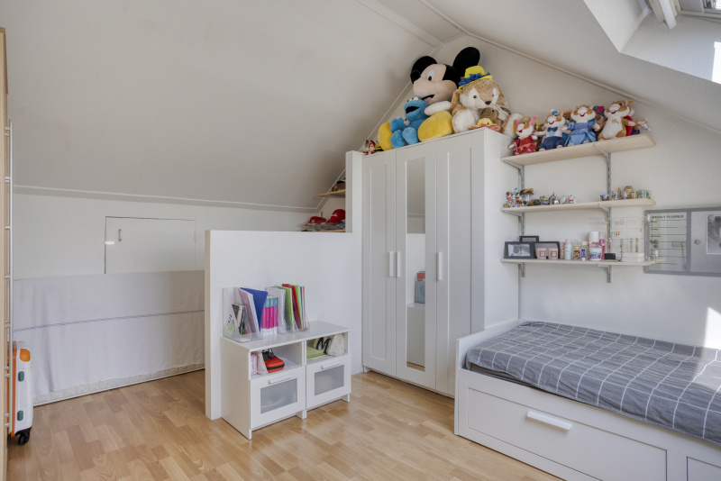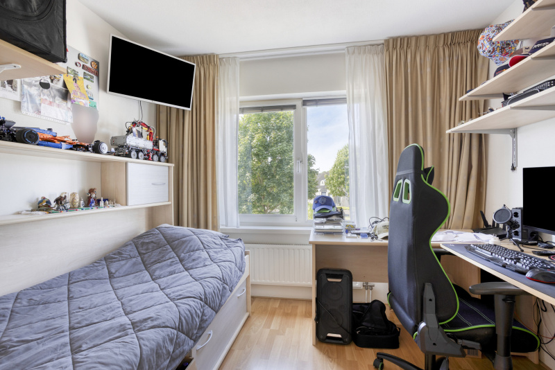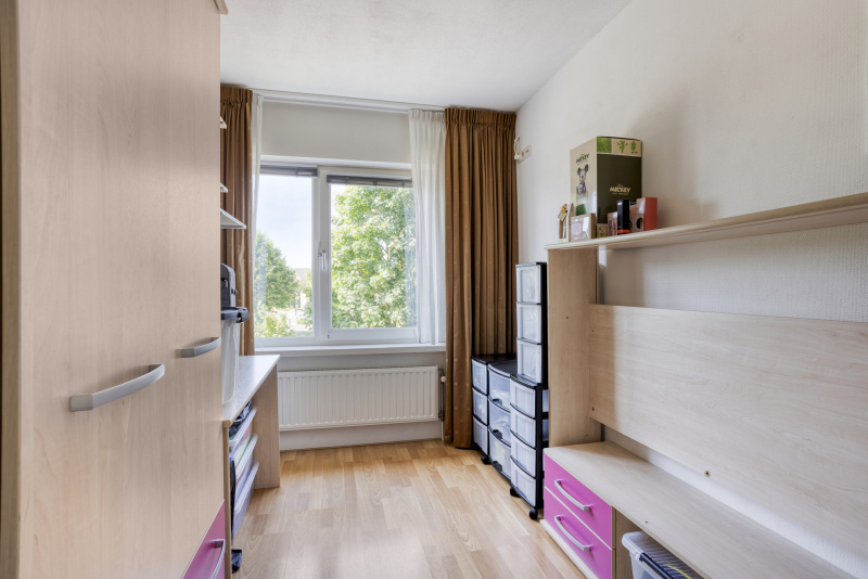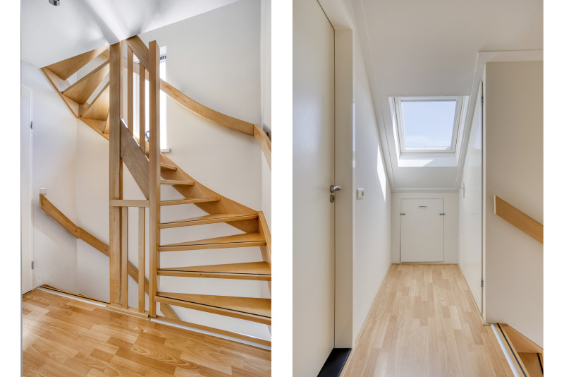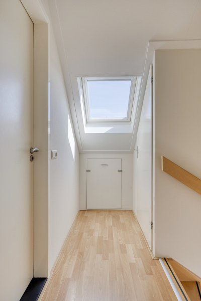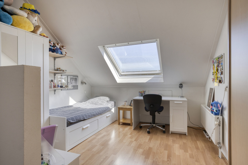 Via een vaste trap bereik je een volwaardige tweede verdieping met overloop, veel bergruimte en een vierde slaapkamer met dakraam en inbouwkast. Uiteraard ook ideaal als werkkamer, logeerkamer of hobbyruimte. Hier vind je ook de omvormer van de zonnepanelen.