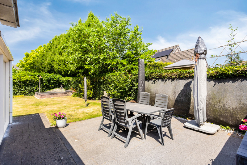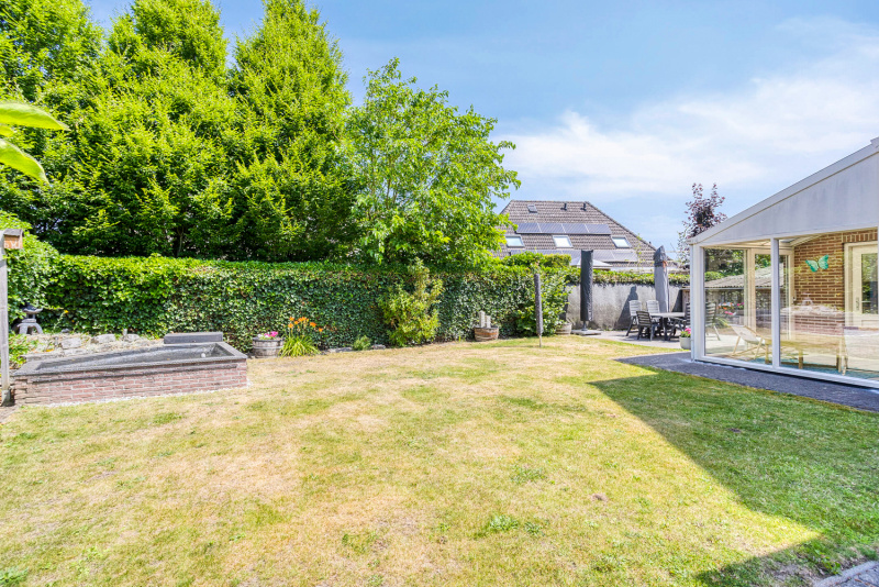 De verzorgde tuin rondom heeft een prachtige vijver, een tuinhuis en een achterom. Dankzij de slimme indeling en serre zit je altijd goed, heerlijk in de zon of juist in de schaduw. Parkeren? Gewoon op eigen terrein of in je garage.