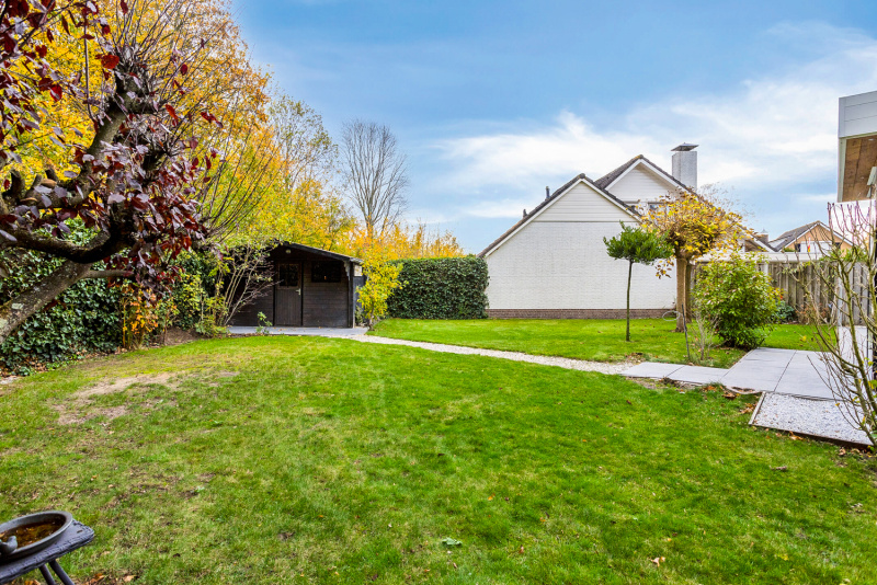 De tuin is rondom fraai aangelegd, beschikt over een tuinhuis en biedt maximale privacy. Aan de achterzijde grenst het perceel aan een groenstrook, waardoor je hier in alle rust kunt genieten van het buitenleven. De ideale en vrije ligging maken dit een plek waar je écht kunt onthaasten.