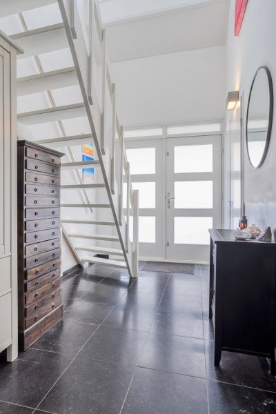 Bij binnenkomst word je verwelkomd in een lichte entreehal met toegang tot de vernieuwde meterkast, trapopgang, toilet, slaapkamer, badkamer en woonkamer. De woonkamer is een heerlijke, lichte leefruimte met grote raampartijen en een aangename sfeer. Dankzij de airco (LG 2022) kun je de temperatuur hier het hele jaar door perfect reguleren, verwarmen in de winter, koelen in de zomer. Een houtkachel behoort ook tot de mogelijkheden voor extra gezelligheid.