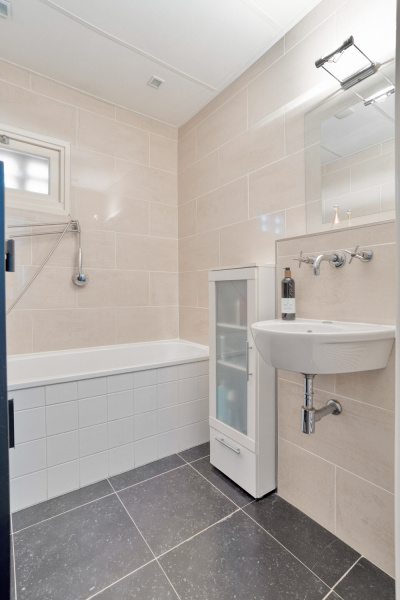 Op de begane grond bevindt zich verder een ruime slaapkamer en een moderne badkamer, voorzien van ligbad en wastafel. Dit maakt de woning ideaal voor wie gelijkvloers wil wonen, volledig toekomstgericht!