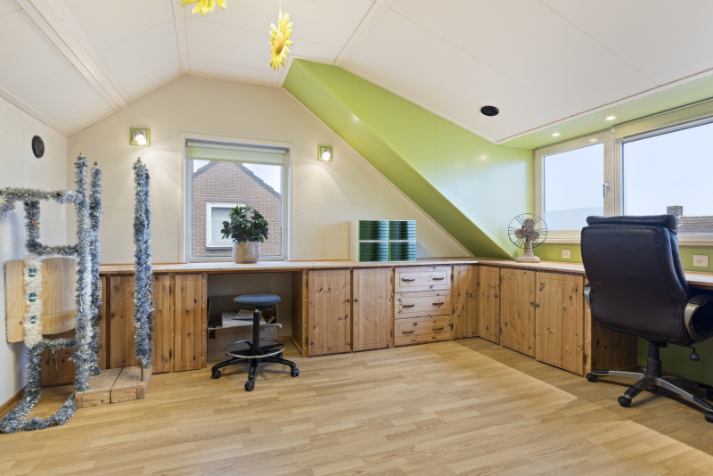 Via een vaste trap bereik je de tweede verdieping met een ruime vierde slaapkamer. Achter de knieschotten is volop bergruimte aanwezig. Op de overloop bevindt zich de opstelplaats van de HR-combiketel (Remeha 2004). Dankzij de dakkapel is dit een volwaardige woonruimte met veel licht. Deze verdieping leent zich perfect als slaapkamer, thuiswerkplek of hobbyruimte.
