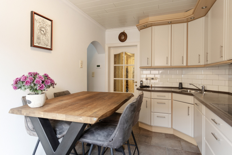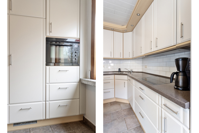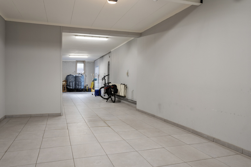 In de bijkeuken bevind zicht de witgoedaansluiting en geeft bovendien toegang tot de kelder, ideaal als extra voorraadruimte.
