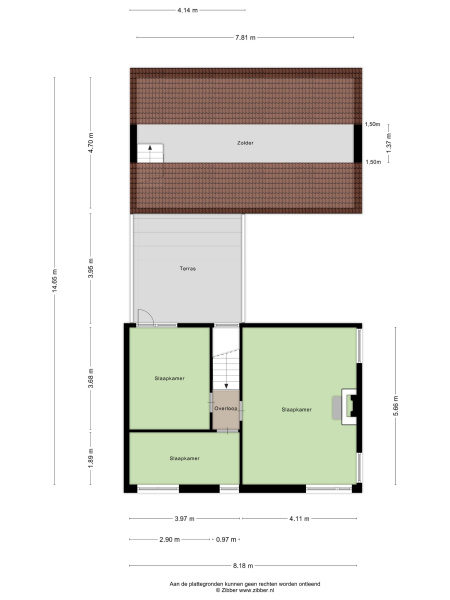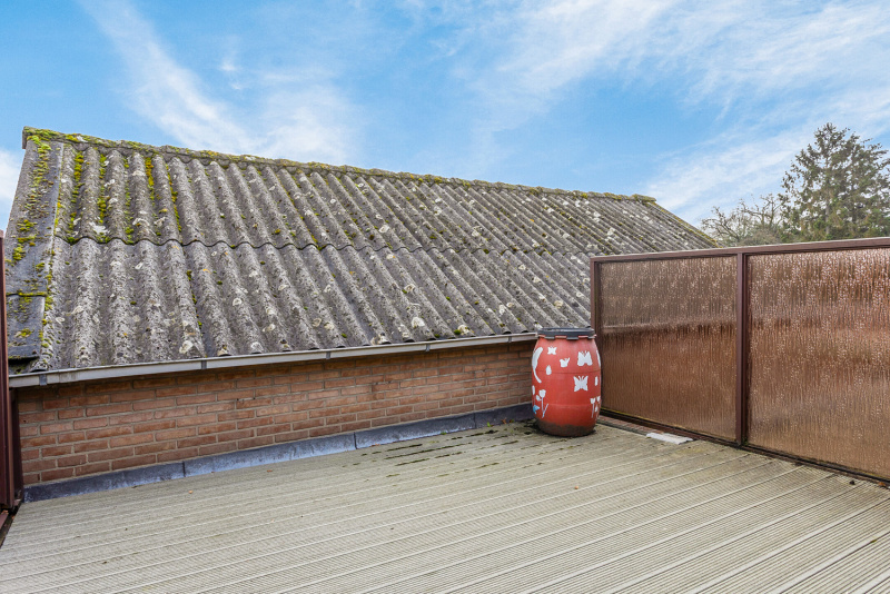 De overloop geeft toegang tot drie slaapkamers, allen voorzien van rolluiken. De grote slaapkamer beschikt over een gaskachel. De tweede slaapkamer biedt toegang tot het dakterras, een fijne buitenruimte om in alle privacy te ontspannen.