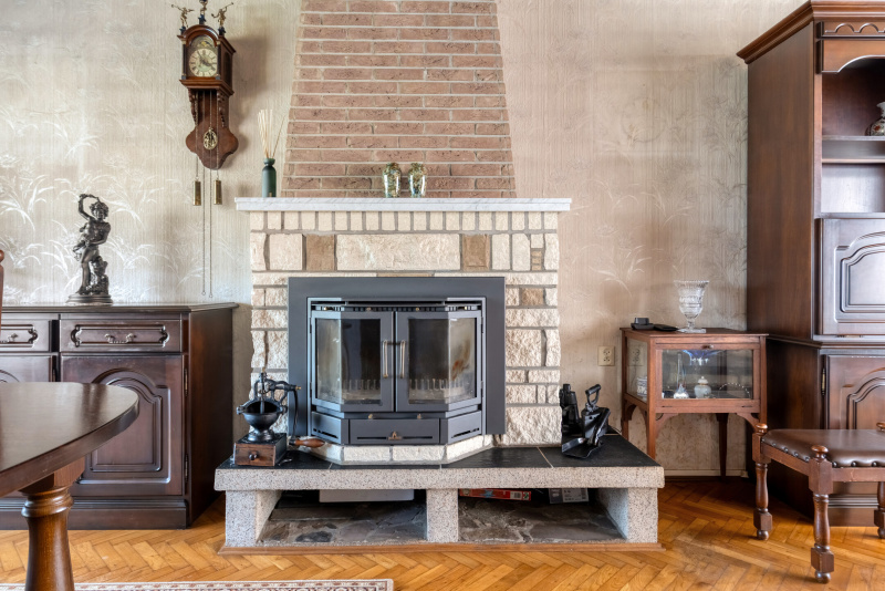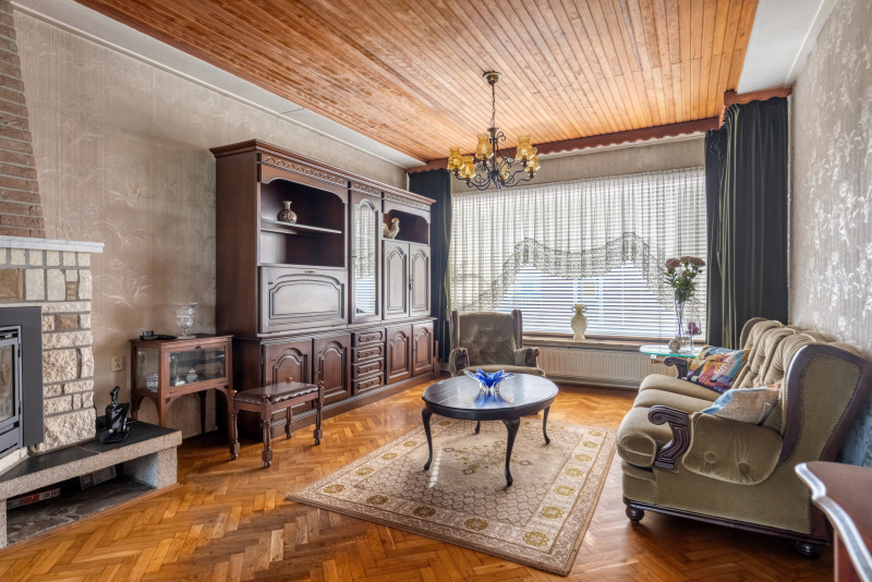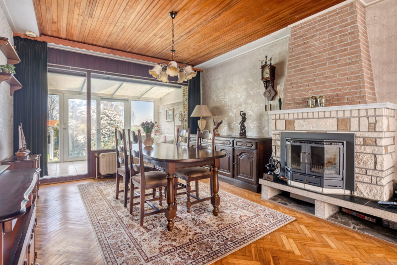 De woonkamer is ruim opgezet en licht dankzij de grote raampartijen. De houtkachel zorgt voor sfeer, terwijl het uitzicht richting de tuin en het groen direct opvalt. Dit is een plek waar je echt kunt ontspannen.