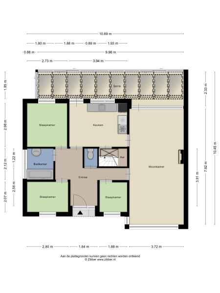 De woning beschikt over drie slaapkamers op de begane grond, ideaal voor gelijkvloers wonen of werken aan huis.