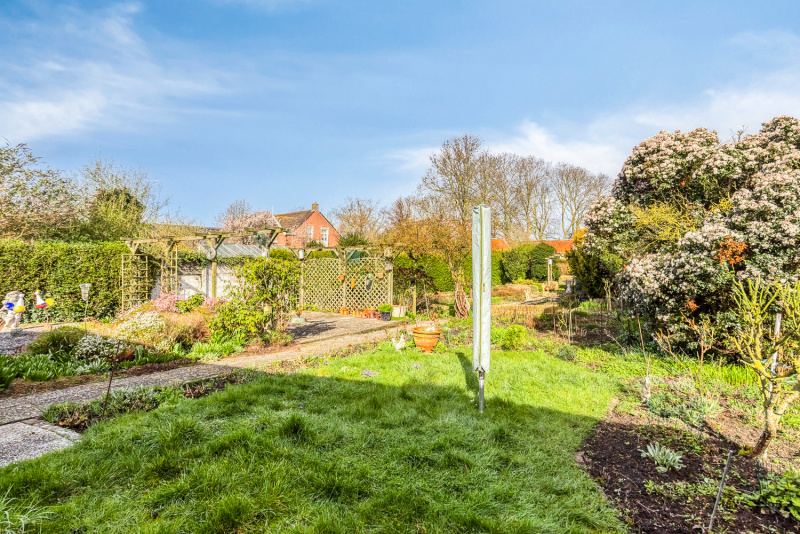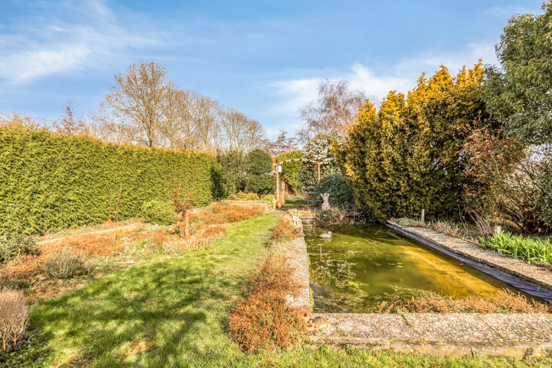 Het perceel van biedt uitzonderlijk veel buitenruimte. De tuin is ingericht met een grote vijver, plantenserre en achterin bevindt zich een eigen wei, ideaal voor kleinvee, hobbydieren of simpelweg genieten van vrijheid en groen.