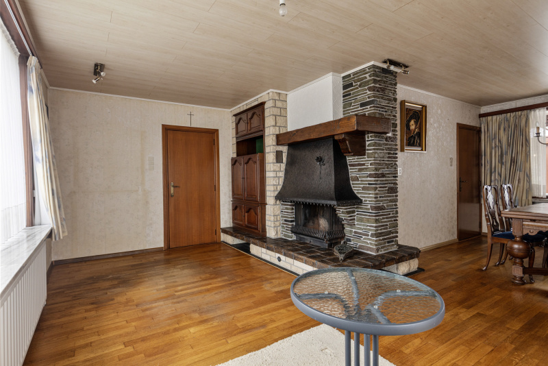 De royale woonkamer is voorzien van een sfeervolle haard en grote raampartijen die zorgen voor veel lichtinval en een prachtig uitzicht op de tuin.