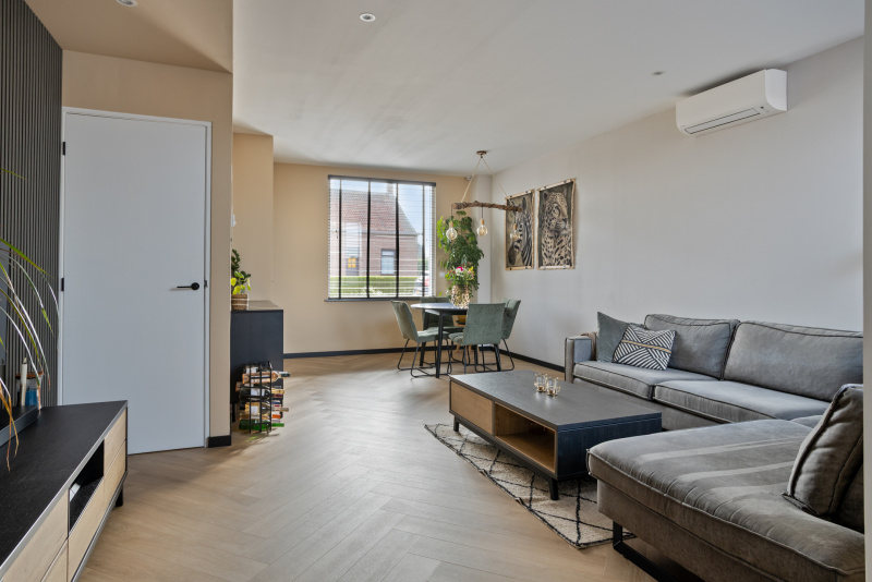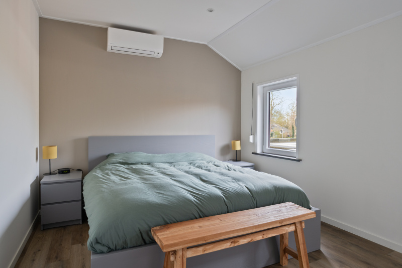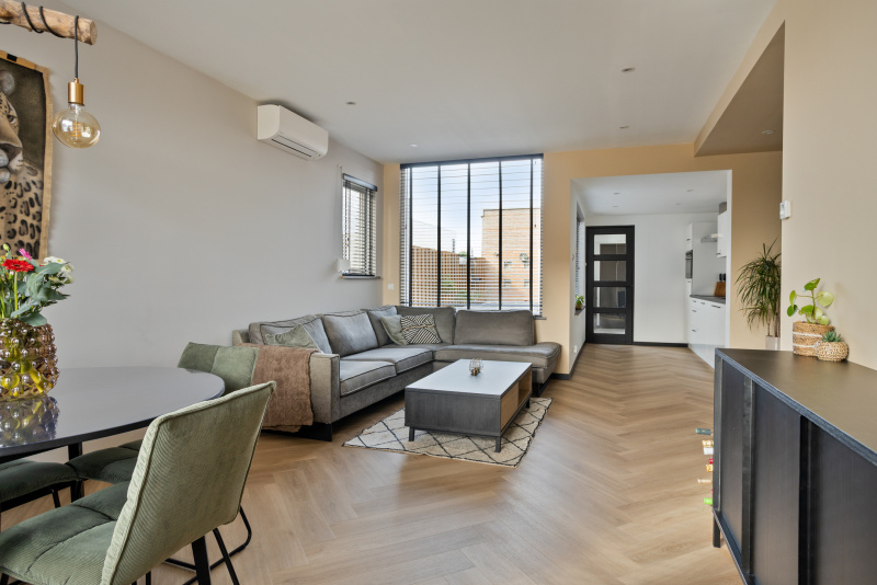 De woonkamer is strak afgewerkt en voorzien van een Daikin airco die zowel kan koelen als verwarmen. In combinatie met de vloerverwarming zorgt dit voor een aangenaam en energiezuinig binnenklimaat. De begane grond is volledig voorzien van een nieuwe geïsoleerde vloer met vloerverwarming, een basis waar je geen omkijken meer naar hebt!