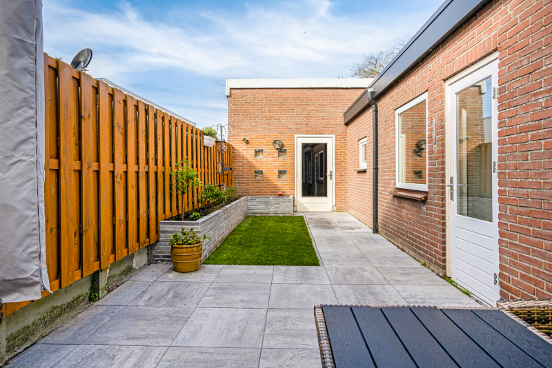 De woning beschikt over een grote aangebouwde garage/werkplaats met keukenblok, ideaal voor auto, hobby, opslag of werk aan huis. De tuin is onderhoudsvriendelijk aangelegd, zodat je hier zonder veel werk kunt genieten van buitenruimte.