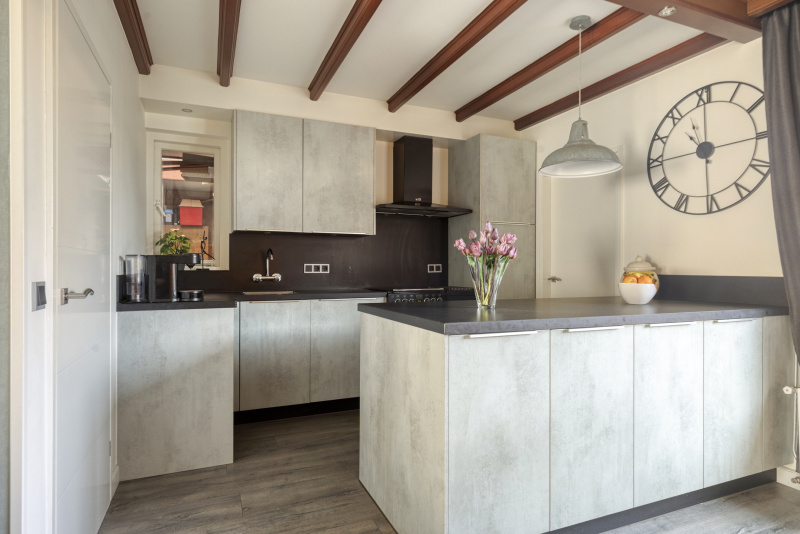 De open keuken is luxe uitgevoerd en vormt het hart van de woning. Het keukeneiland zorgt voor extra werk- en leefruimte en is voorzien van onder andere een vaatwasser, gaskookplaat, afzuigkap en oven.