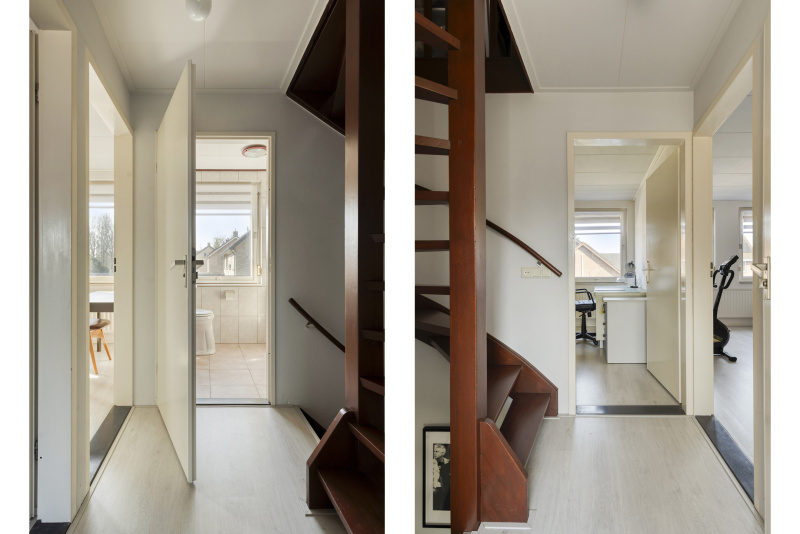 De overloop geeft toegang tot drie ruime slaapkamers en een tweede badkamer. Alle slaapkamers zijn goed van formaat en bieden volop mogelijkheden voor gezin, werk of hobby. De tweede badkamer is praktisch ingericht met een douche, wastafel en toilet.