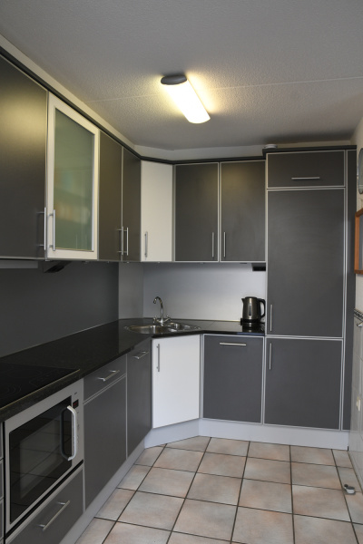 De woonkamer is ruim en licht, met een open verbinding naar de keuken. De open keuken is compleet uitgevoerd en voorzien van een granieten aanrechtblad, inductiekookplaat, combimagnetron, koelkast, afzuigkap en vaatwasser.