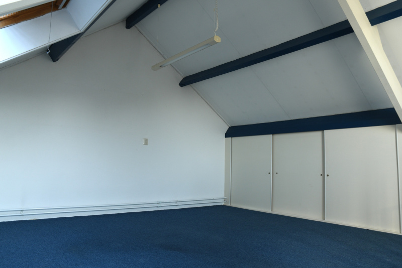 Via een vaste trap bereik je de tweede verdieping. Hier bevindt zich een ruime vierde slaapkamer met een groot dakraam en een zijraam, wat zorgt voor veel lichtinval.