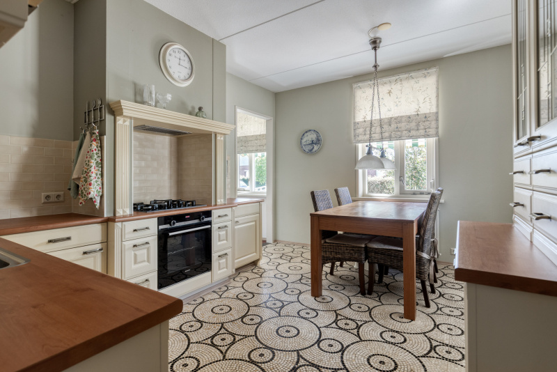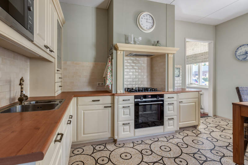 De woonkeuken is ruim opgezet en compleet uitgevoerd met gasfornuis, afzuigkap, koelkast, vaatwasser(2022), oven(2023) en magnetron. Vanuit de keuken is er toegang tot de ruime bijkeuken met witgoedaansluiting (Remeha 2021), extra bergruimte en vloerverwarming.