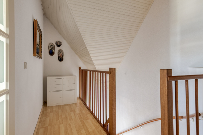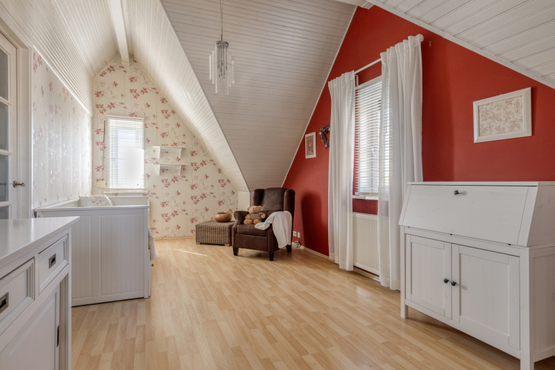 Via de vaste trap bereik je de tweede verdieping. Hier bevindt zich een overloop met toegang tot een berging met opstelplaats van de cv-installatie en een grote derde slaapkamer. Deze verdieping biedt extra leefruimte en maakt de woning ideaal voor gezinnen, thuiswerken of hobbygebruik.