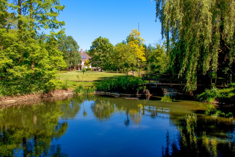 Het landgoed, iets meer dan 2 hectare, is onder architectuur gebouwd in 1990. De oprijlaan leidt u naar het royale landhuis. Het landhuis is omgeven door bos en biedt veel privacy. De tuin is werkelijk uniek en vindt u nergens. Vanuit de woning kijkt u wijds uit over uw eigen landerijen. Hier vindt u rust en ruimte!