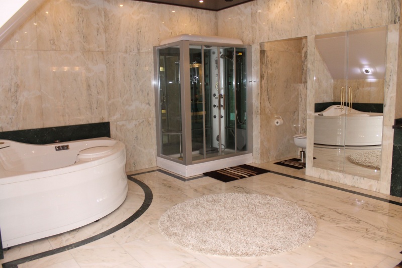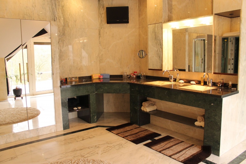 Via de voordeur komt u in de royale entreehal met garderobe, toegang tot het ruime toilet met apart wastafelmeubel en trap naar de verdieping en de souterrain. De souterrain is ideaal als gastenverblijf te gebruiken. Hier treft u drie slaapkamers met ieder een eigen luxe badkamer uitgevoerd in marmer.