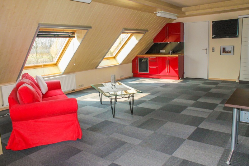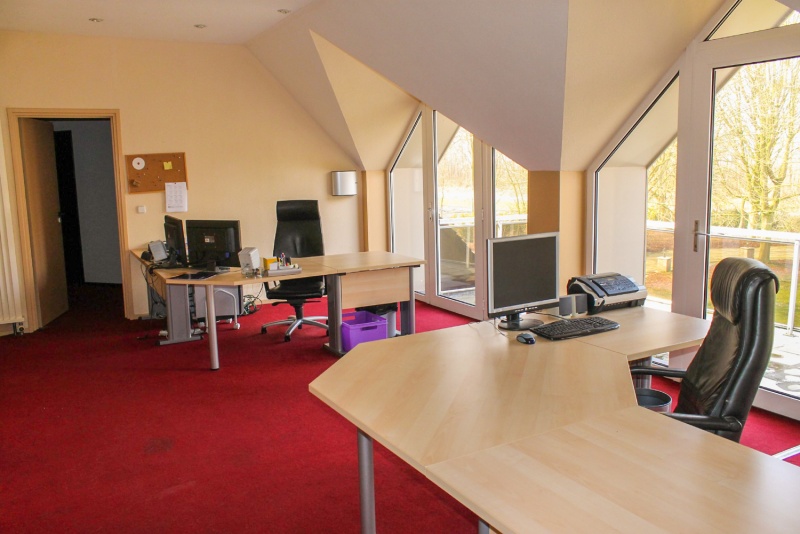 Op de verdieping treft u diverse kantoor- en werkruimten, welke uiteraard ook ingericht zouden kunnen worden als slaapkamer.
